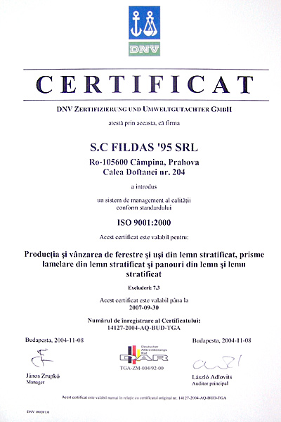 „Am avut ocazia sa comand la Fildas 5 ferestre si 3 usi. Vreau sa spun ca sunt extraordinar de multumit de felul cum sunt montate si executate. Recomand cu mare placere tuturor aceasta firma.”